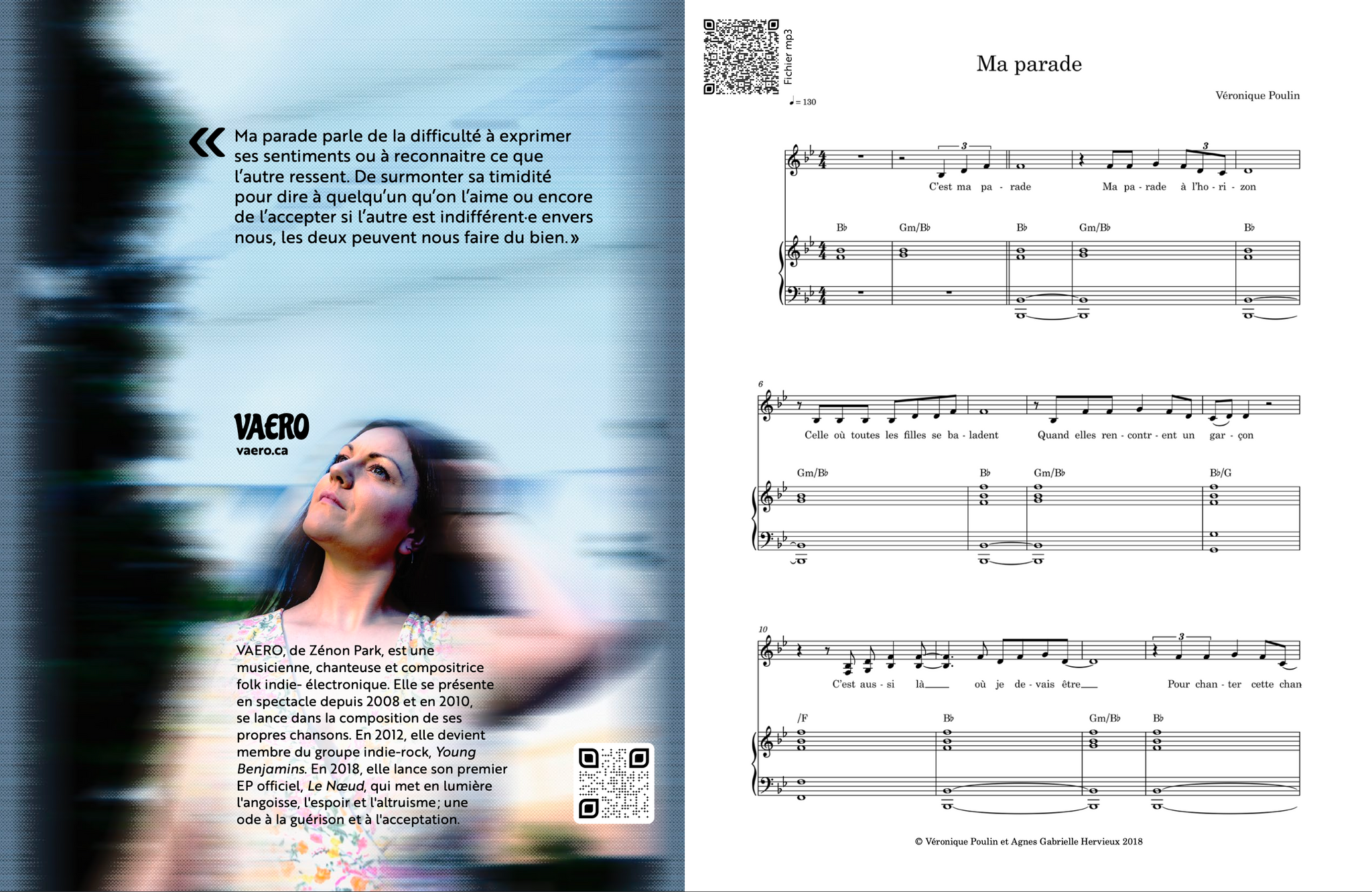 VAERO, de Zénon Park, est une musicienne, chanteuse et compositrice folk indie-électronique. Elle se présente en spectacle depuis 2008 et en 2010, se lance dans la composition de ses propres chansons. En 2012, elle devient membre du groupe indie-rock, Young Benjamins. En 2018, elle lance son premier EP officiel, Le Noeud, qui met en lumière l'angoisse, l'espoir et l'altruisme ; une ode à la guérison et à l'acceptation.